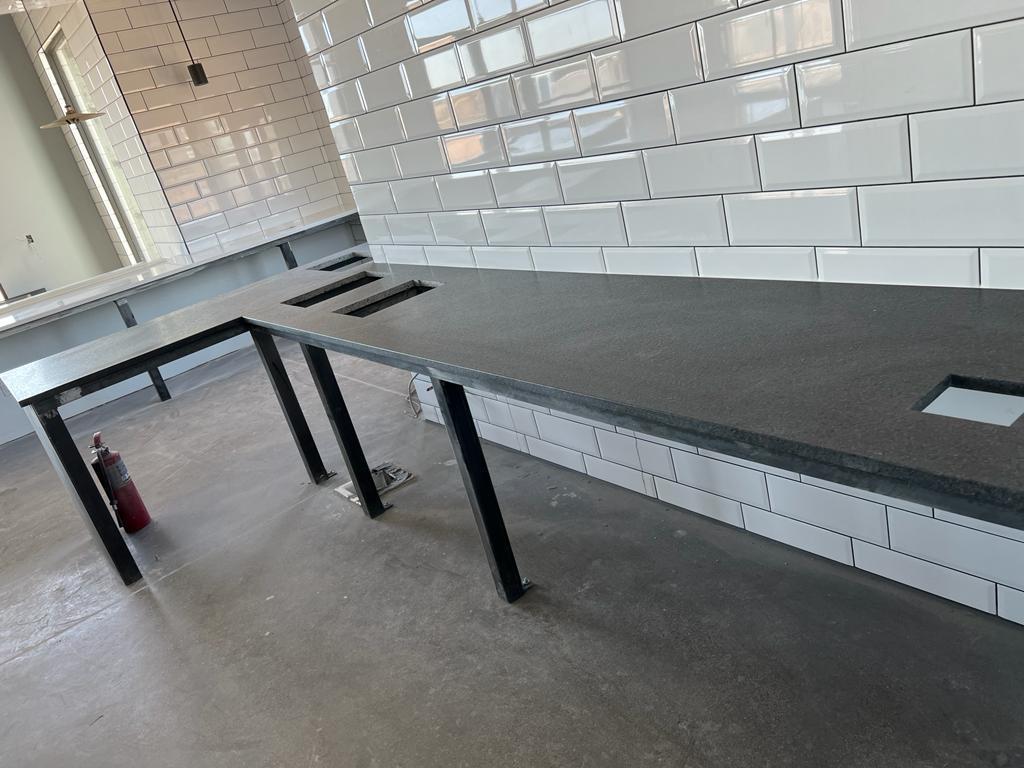 Bar tops, serving counters, hostess stations, and food prep surfaces designed for durability and easy maintenance.
